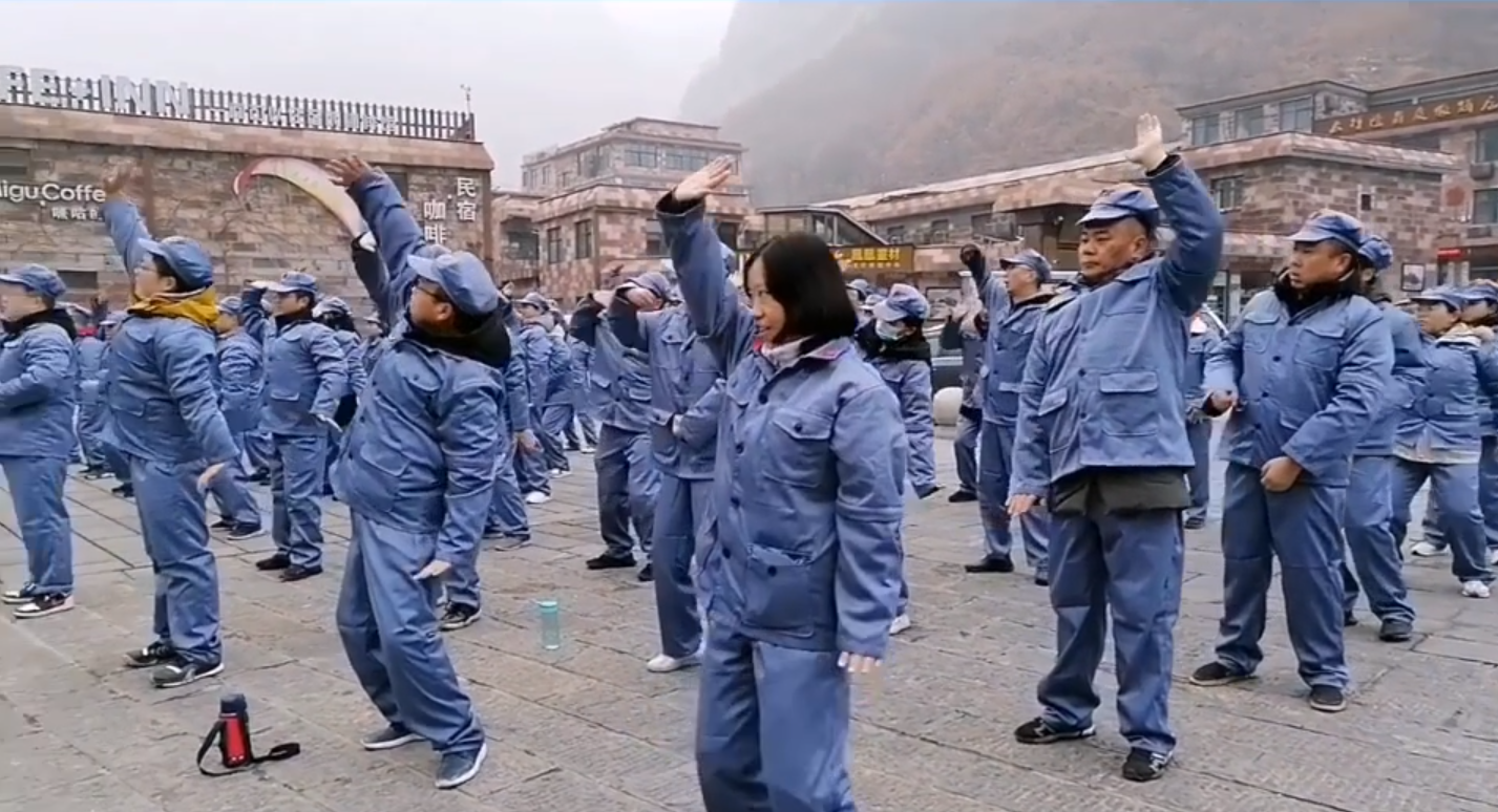 素質(zhì)拓展紅色教育活動在歡樂和疲憊中不知不覺進(jìn)入了尾聲。2月11日,素拓的最后一天。早上7點半大家集合完畢,教官帶著大家一起打健身氣功“八段錦”,美好的一天從此刻開始!