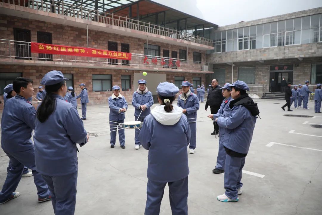 吃完早飯休息過后,就又開始了有趣的團(tuán)隊游戲環(huán)節(jié),在教官的帶領(lǐng)下,大家先進(jìn)行一些熱身活動,驅(qū)走身上的寒氣,接下來有趣的“橋梁工程、擊鼓顛球”等團(tuán)建游戲拉開序幕。