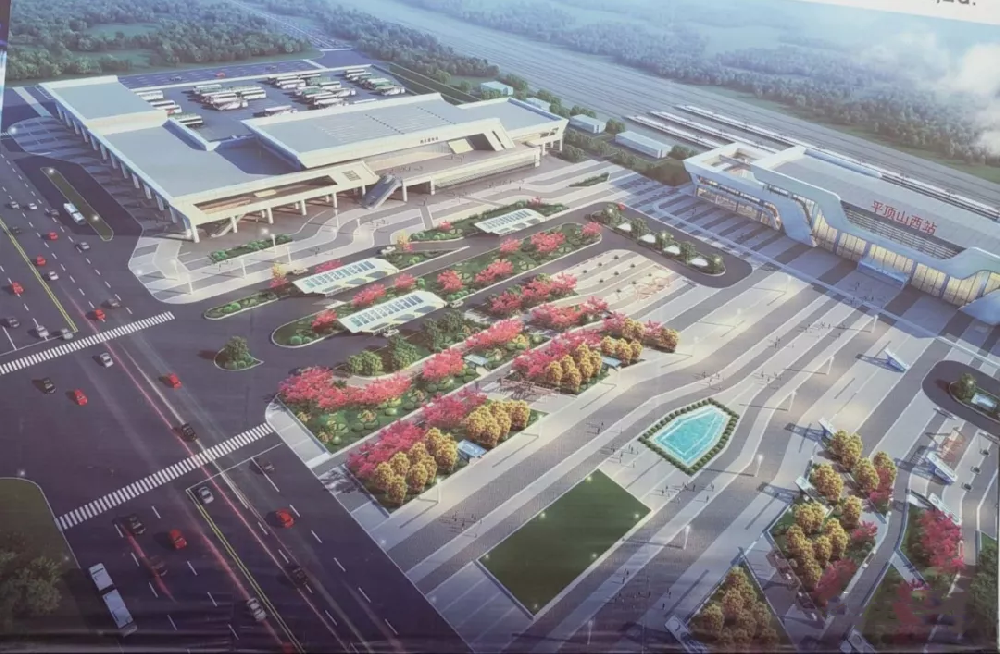 鄭萬高鐵平頂山西站采取“上進下出模式”,廣場上布置出租車、社會車落客區及公交落客區,旅客從站前廣場地面進站;廣場地下空間與站房出站口連接,旅客由地下一層出站廳上至地面廣場層到達公交客運站;換乘出租車或社會車輛的旅客出站后可直接到達地下一層停車場。鄭萬高鐵是河南省米字形鐵路網的重要組成部分,是溝通西南地區與中原、華北、東北地區的重要快速客運通道。