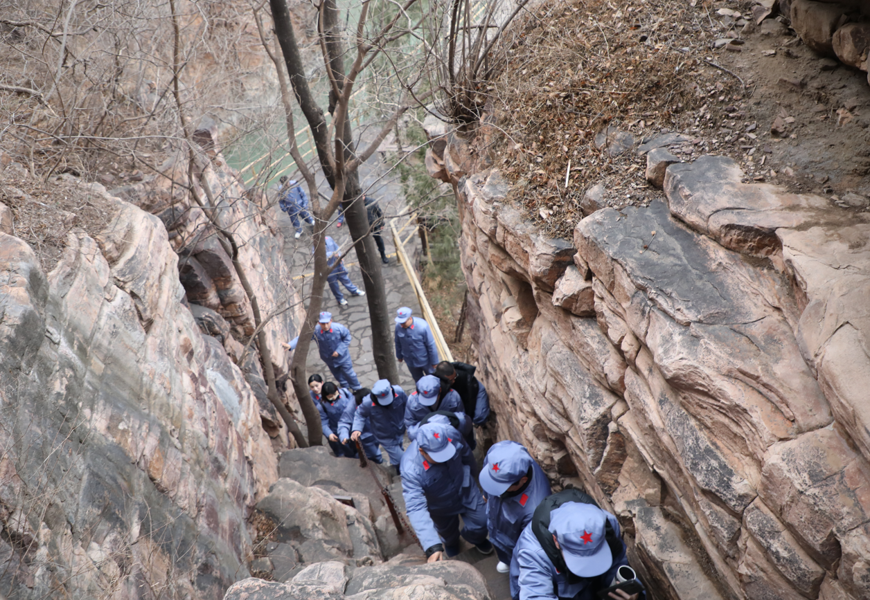 參觀完紅旗渠紀念館后,為了增強學習的直觀感受,大家深入到太行山麓徒步走 5 公里素有“紅飄帶”,“水長城”之稱的紅旗渠的重點咽喉工程--青年洞。沿著渠壁走的這一路看到修建紅旗渠的地方全是由堅硬的石頭組成的陡山,更是深深體會了林州人當年修建紅旗渠的艱難。在那個年代,沒有機械設備,又面對如此困難的自然環境,修成這樣的一條“人工天河”,當年的林州人究竟經歷了什么,我們后輩人實在是很難有切身的體會。