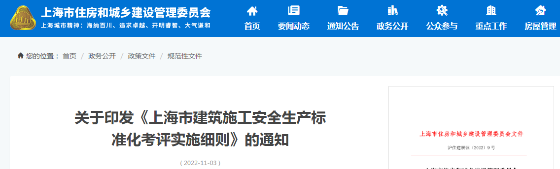 關(guān)于印發(fā)《上海市建筑施工安全生產(chǎn)標(biāo)準(zhǔn)化考評實(shí)施細(xì)則》的通知
