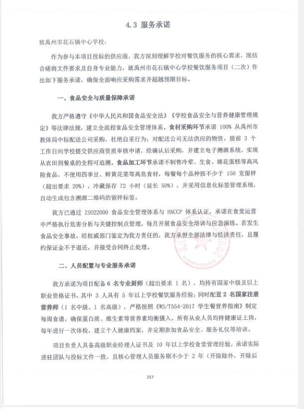 4 | 河南盛鮮禾餐飲管理有限公司 | 服務期1年(期滿考核,合格可以續約,最多可續約四次),每年對服務商考核,考核合格后,續約合同;考核不合格,自動終止合同。如合同執行期間與國家、省市政策或規定不符,按國家、省市相應政策執行 | 密封完好 |